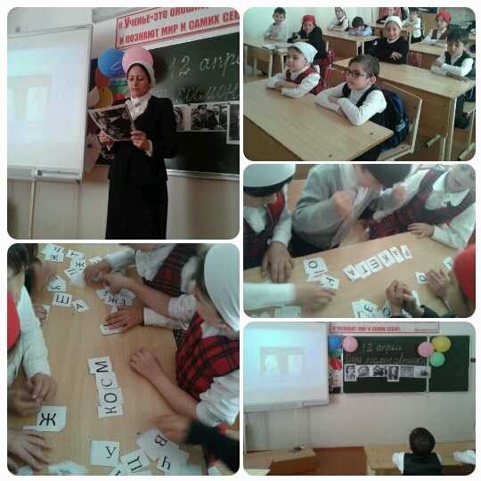 Первоклассники МБОУ "Дарбанхинская СШ" отмечают День космонавтики. Учительница 1"А" класса Оксана Алимпашаевна провела игру "Собери слово".