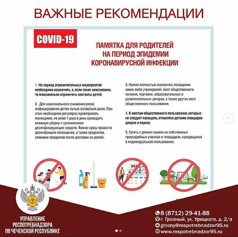 Управление Роспотребнадзора по Чеченской Республике📲 горячая линия по COVID-19:8 (989) 916-72-348 (938) 989-07-58📍 ЧР, г. Грозный, ул. Урицкого, д. 2/а☎️/📠 8 (8712) 29-41-88✉️ grozny@rospotrebnadzor95.ru🌐 www.rospotrebnadzor95.ru