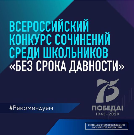 29.12.2020📍 Стартовал приём заявок на участие во Всероссийском конкурсе сочинений «Без срока давности», организованном Минпросвещения.В нём могут принять участие школьники России и Беларуси: ученики 5–7-х классов, 8–9-х классов, 10–11-х классов не старше 18 лет.Региональный этап конкурса будет проходить до 15 марта, федеральный – с 16 марта по 15 апреля.📲 Подробности – на нашем сайте edu.gov.ru.