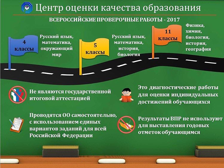 10.02.2017Информация о Всероссийских проверочных работах.В 2016-2017 учебном году будут проведены Всероссийские проверочное работы для обучающихся 4-х классов в штатном режиме, 5-х и 11-х классах в режиме апробации. ВПР не являются государственное итоговой аттестацией. Они проводятся образовательной организацией самостоятельно, с использованием единых вариантов заданий для всей Российской Федерации, разрабатываемых на федеральном уровне в строгом соответствии с ФГОС. Это диагностические работы для оценки индивидуальных достижений обучающихся. ВПР можно сравнить с контрольными работами, традиционно проводившимися в прошлые десятилетия во многих регионах и отдельных ОО. Результаты выполнения Всероссийских проверочных работ могут быть использованы родителями для определения образовательной траектории своих детей. Они могут быть также использованы для оценки уровня подготовки обучающихся по итогам окончания основных этапов обучения, для совершенствования преподавания учебных предметов в образовательных организациях РФ, для развития региональных систем образования. Рособрнадзор не рекомендует ОО использовать результаты ВПР для выставления годовых отметок обучающихся.