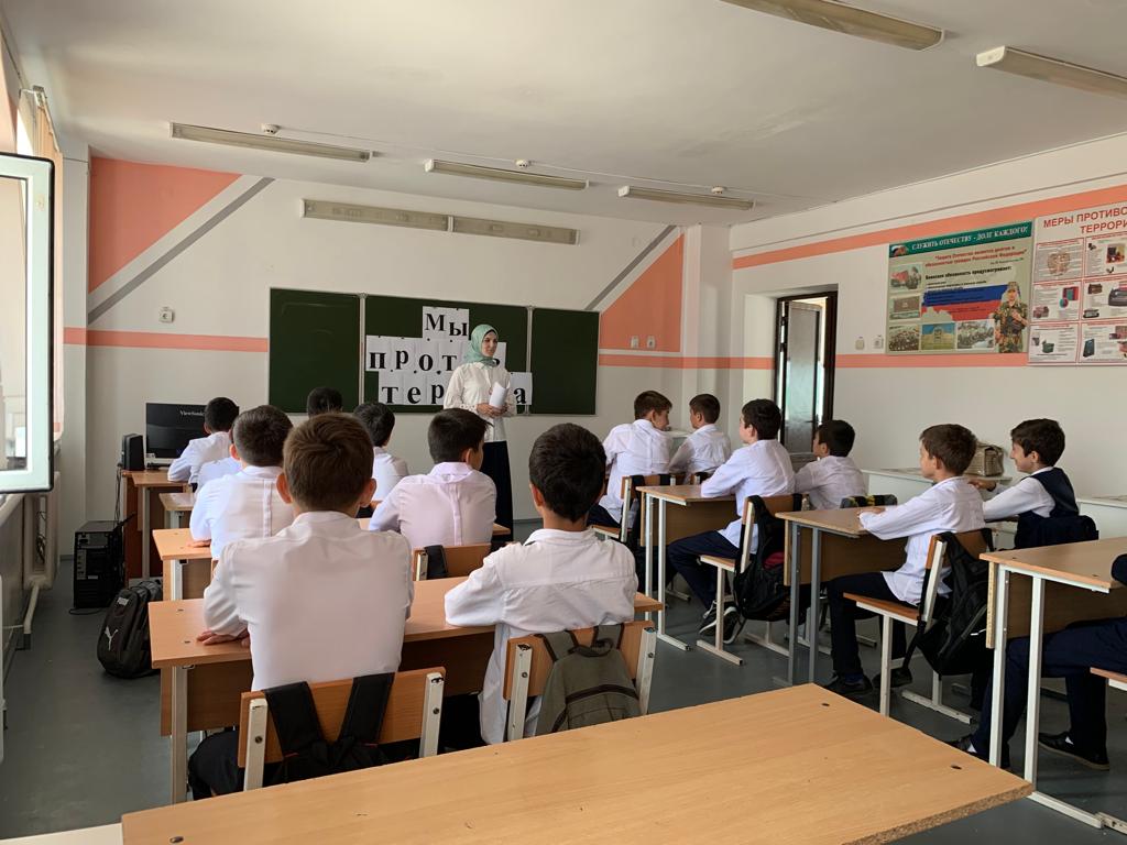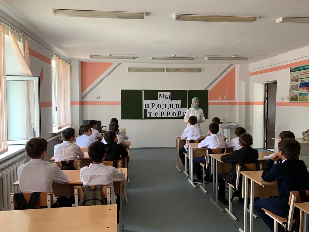 14.10.2022г.в МБОУ "Дарбанхинская СШ" прошла беседа в 7 классе на тему: "Терроризм не пройдёт", посвящённая борьбе с идеологией терроризма павших героев, отдавших свои жизни, спасая детей.
