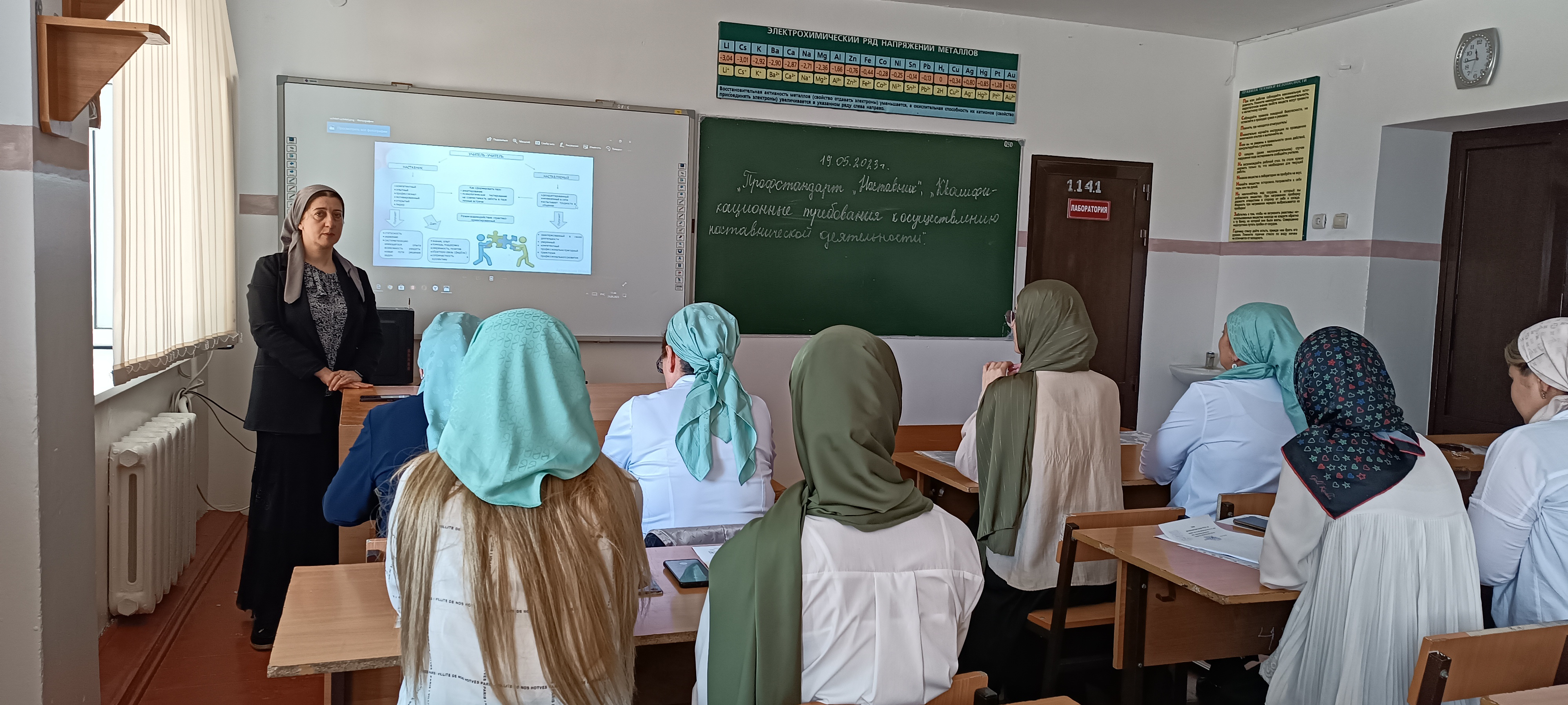 19.05.202319 мая 2023 года в МБОУ «Дарбанхиинская СШ» с целью ускорения адаптации начинающих педагогов к условиям осознания себя полноправным членом педагогического коллектива; формирования позитивного эмоционального восприятия начинающими педагогами своей профессиональной деятельности; ускорения накопления ими профессионального опыта; осознания начинающими педагогами актуальных направлений своего профессионального развития; освоения начинающими педагогами новых методов профессиональной деятельности организовано и проведено мероприятие «Профстандарт «Наставник», «Квалификационные требования к осуществлению наставнической деятельности».