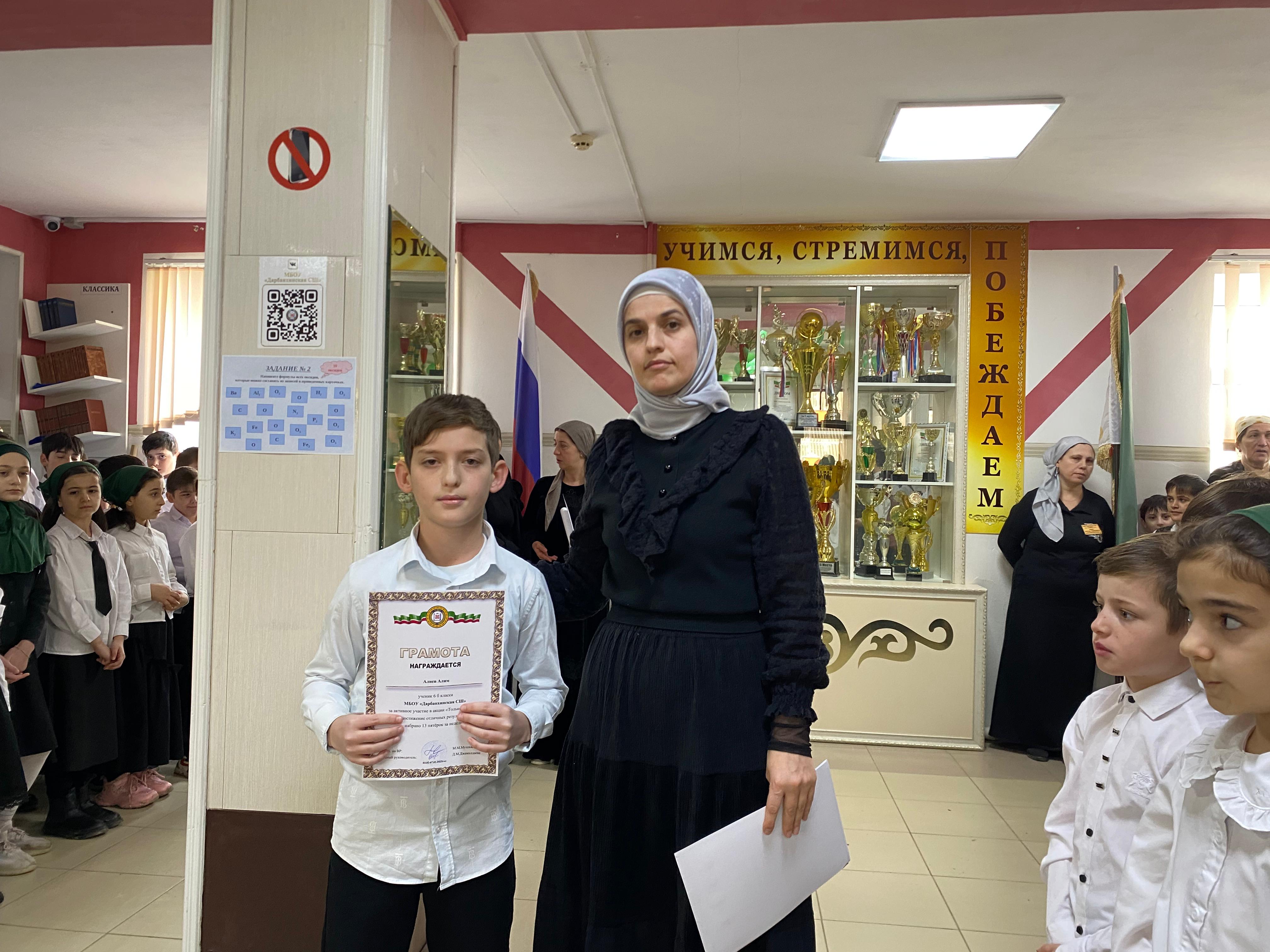 В МБОУ Дарбанхинская СШ каждый понедельник начинается торжественно: с поднятия флага под звуки гимнов Российской Федерации и Чеченской Республики. Кроме того, мы рады сообщить, что наши учащиеся приняли участие в акции "Только пятерки" и показали отличный результат!