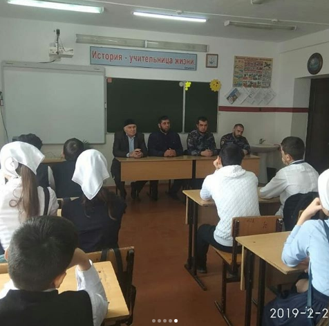 01.03.2019В целях реализации духовно нравственного воспитания и профилактики табакокурения и наркомании, в МБОУ "Дарбанхинская СШ" проведены беседы с учащимися 9-10-11 классов. На встречу к подрастающему поколению были приглашены гости:председатель совет старейшин Гамаев Ш., участковый уполномоченный майор полиции Межидов Б.Х., инспектор ПДН отдела МВД России по Гудермесскому району капитан полиции Шовхалов И.И., имам с. Дарбанхи Магомадов В.Б.